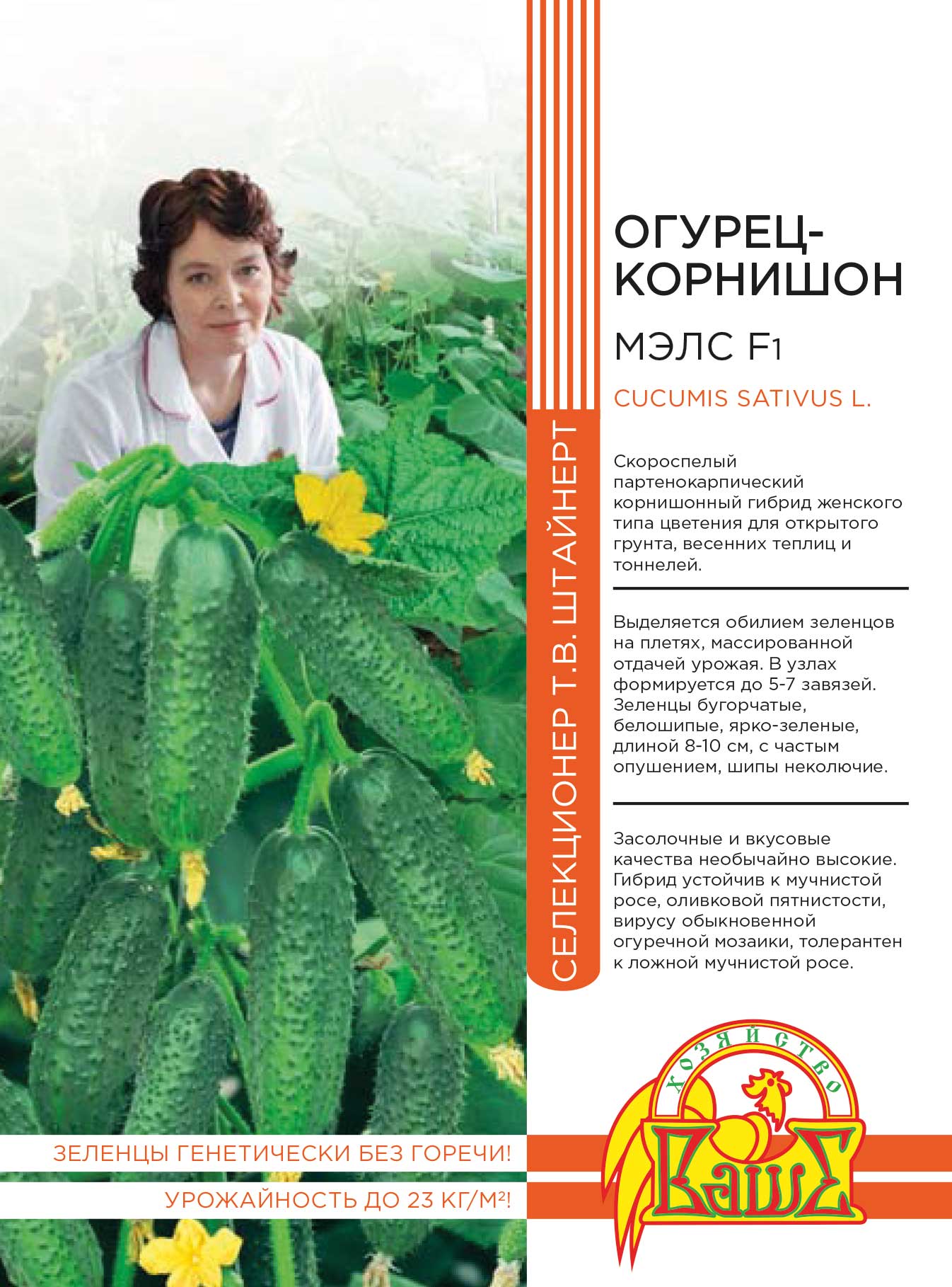 Среднеранний (50–52 дня) пчелоопыляемый сорт универсального использования для выращивания под пленочными укрытиями.
